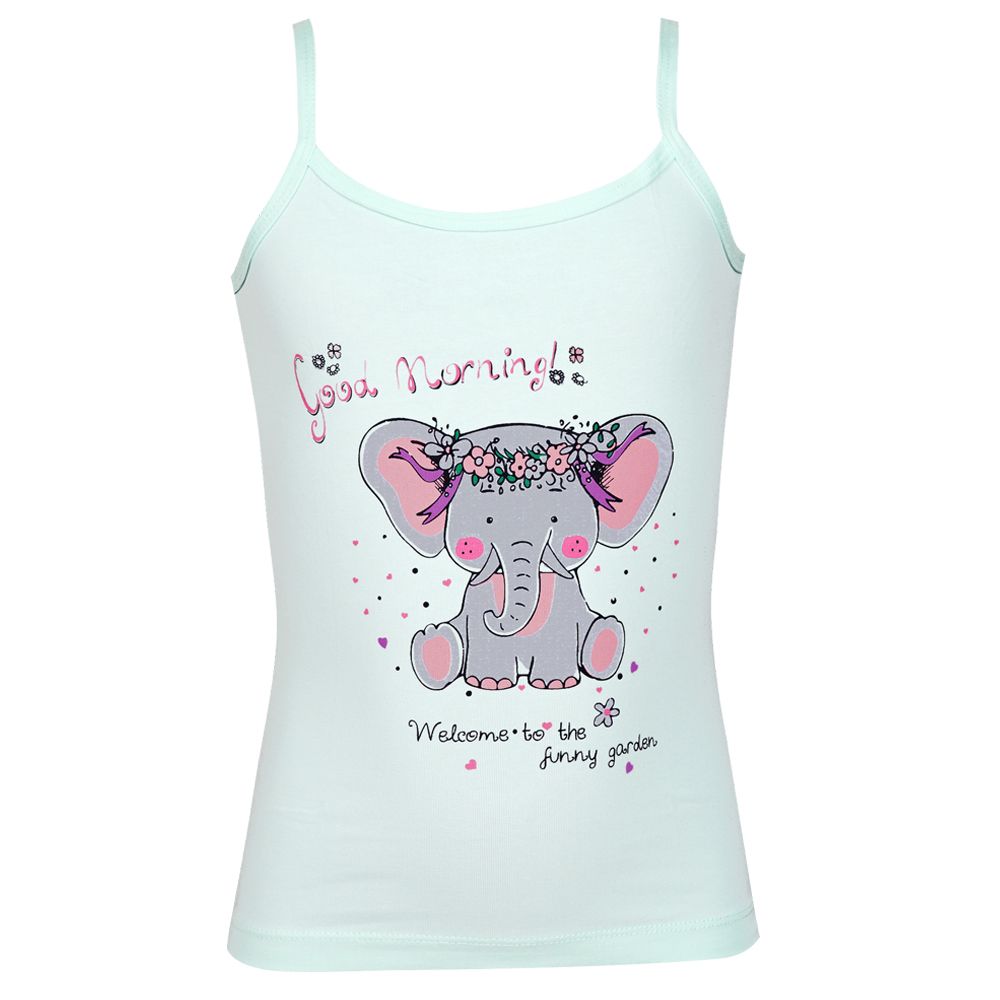 Майка для девочки на узких бретелях. Сшита из натуральной хлопчатобумажной ткани с добавлением эластана, который улучшает посадку изделия по фигуре. Натуральная трикотажная ткань «дышит», сохраняет тепло- и влагообмен, мягкий материал не натирает нежную кожу.