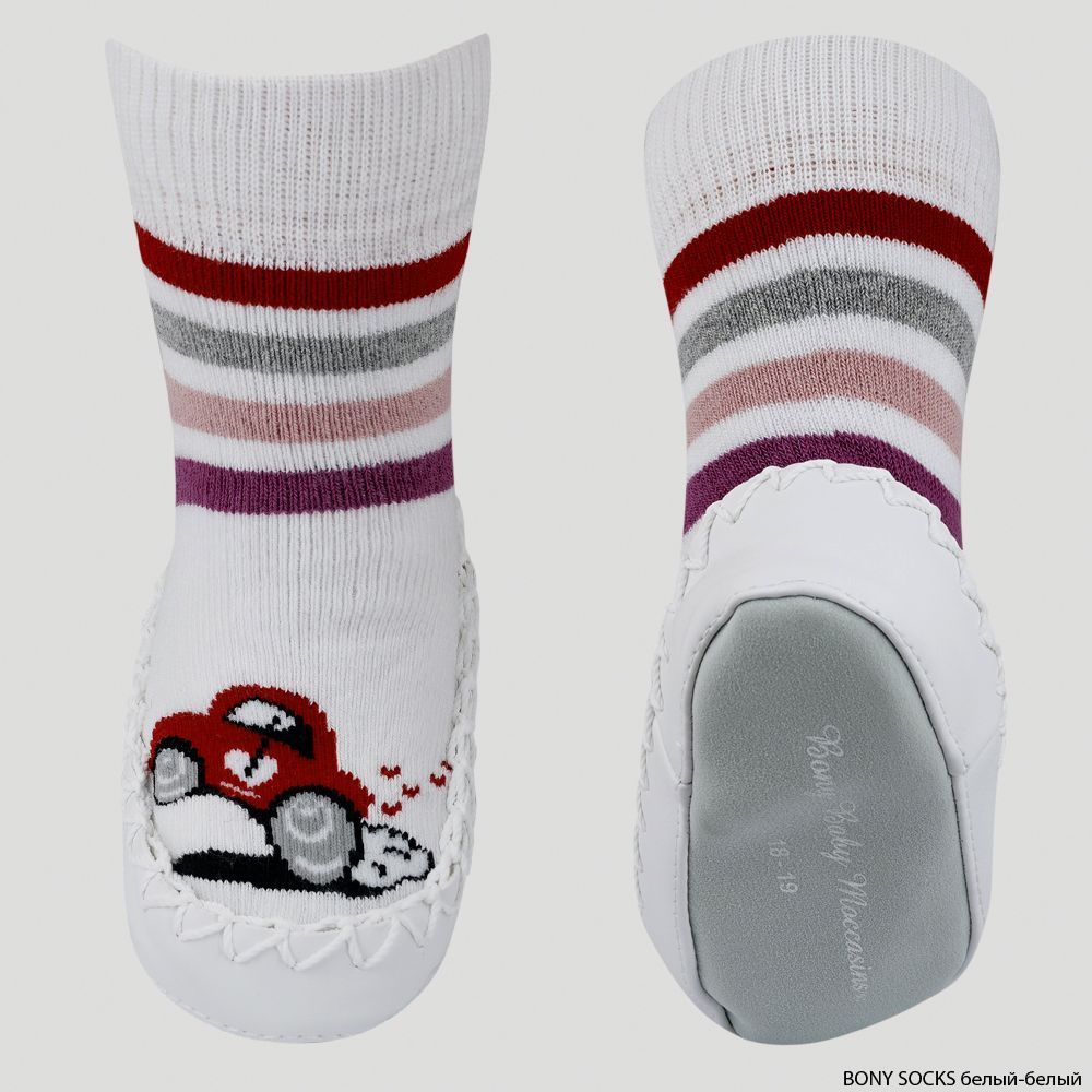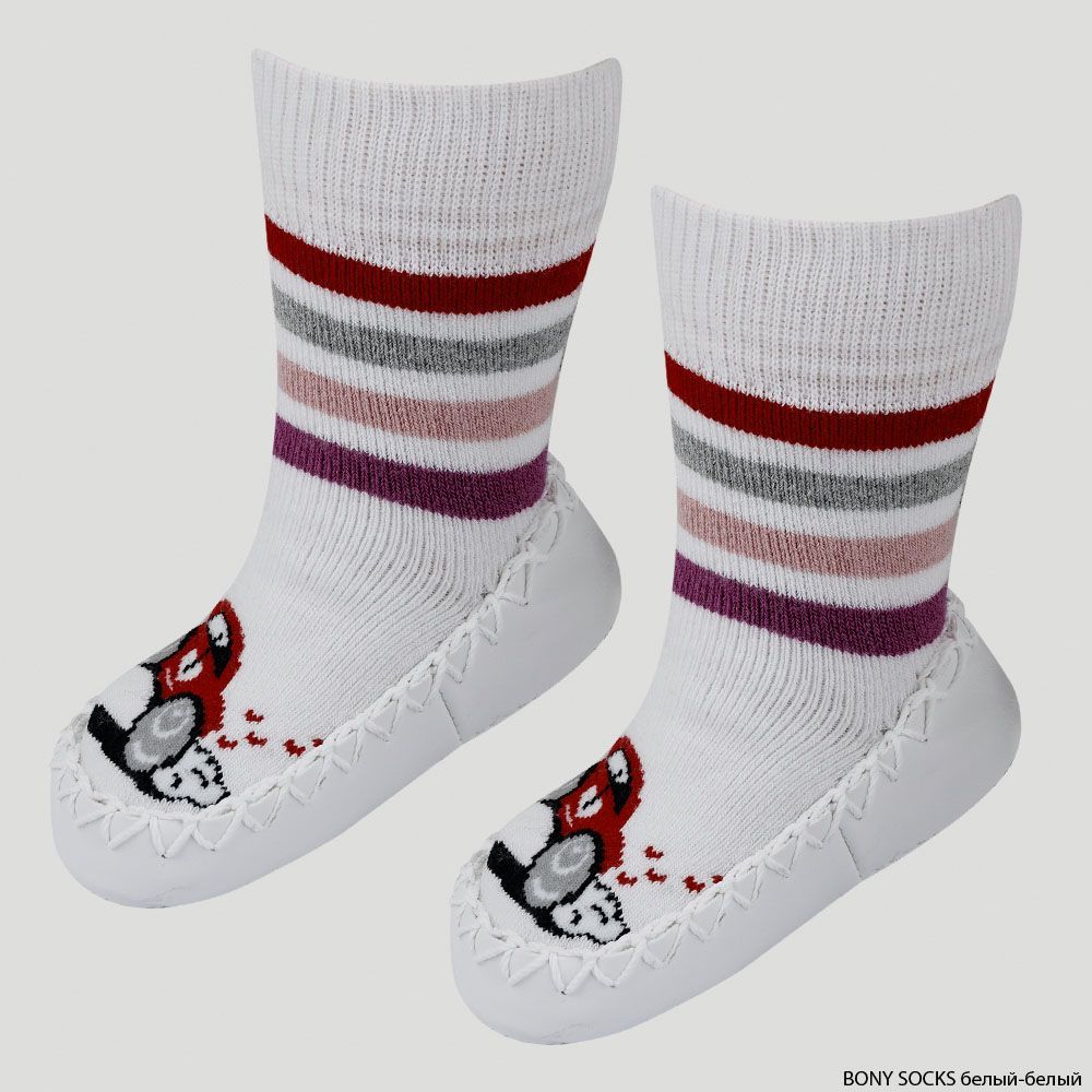 Носки-мокасины детские махровые Mocc Bony, Bony Socks, белый/белый, Сиреневый/Розовый, 16-17 р, в упаковке 1 шт. |