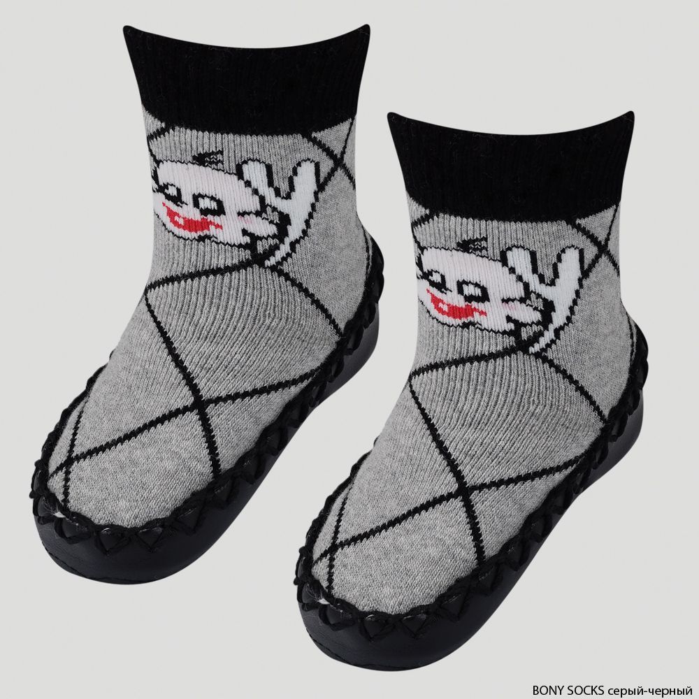Mocc Bony махровые Bony Socks (носки-мокасины детские)/Серый/Черный (цвет Серый/Черный, размер 16-17 размер, 0-6 месяцев)
