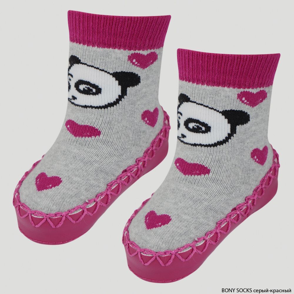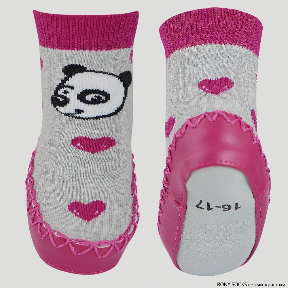 Носки-мокасины детские махровые Mocc Bony, Bony Socks, серый/красный, Серый/Фуксия, 16-17 р, в упаковке 1 шт. |