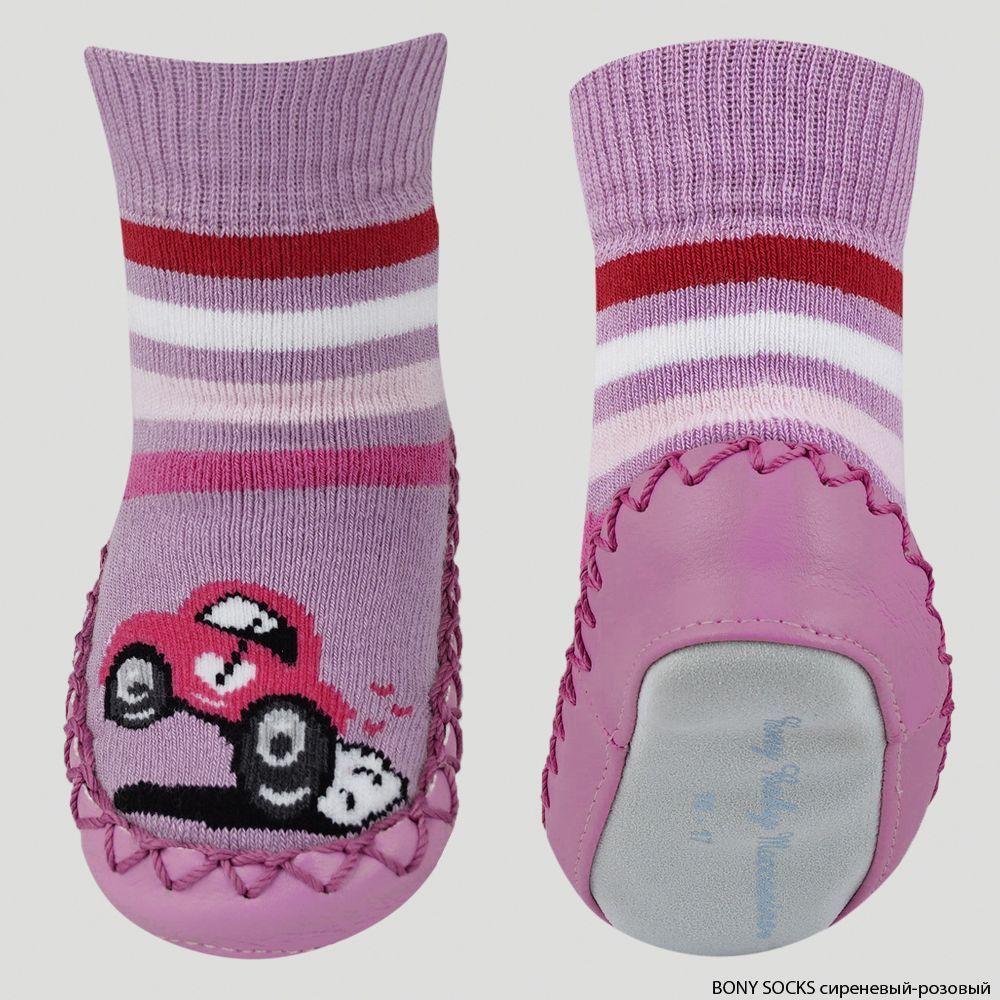 Mocc Bony махровые Bony Socks (носки-мокасины детские)/Сиреневый/Розовый (цвет Сиреневый/Розовый, размер 16-17 размер, 0-6 месяцев)