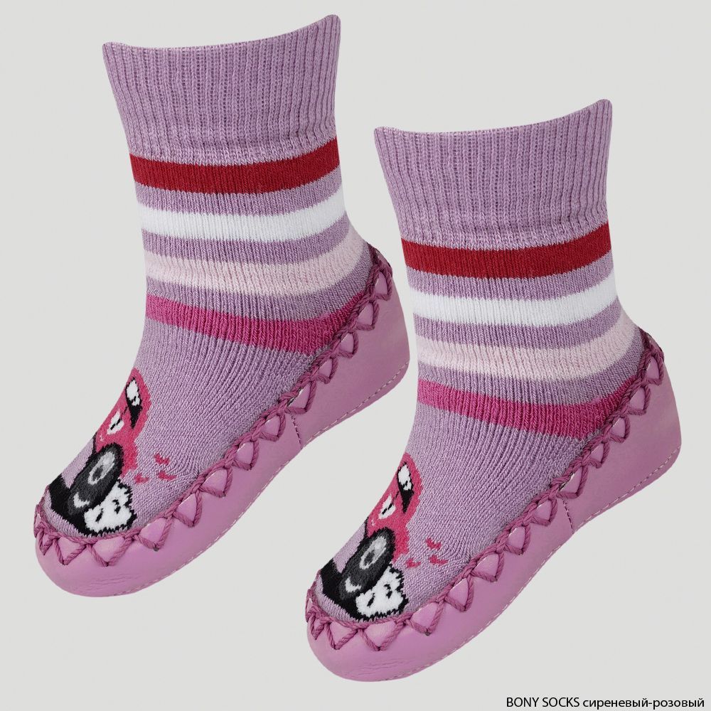 Носки-мокасины детские махровые Mocc Bony, Bony Socks, сиреневый/розовый, Серо-Голубой/Фиолетовый, 16-17 р, в упаковке 1 шт. |