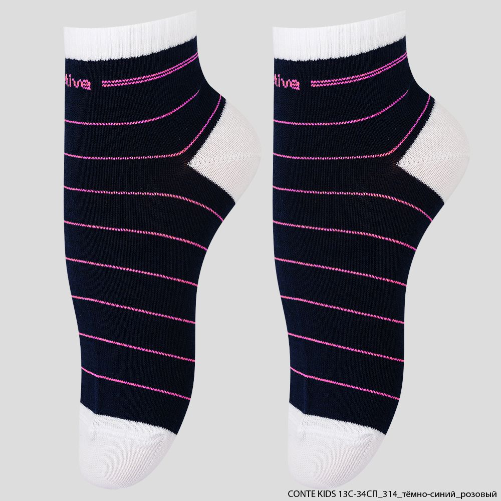 Носки детские спортивные Active, Conte kids (13С-34СП) белый/бирюза, Темно-Синий/Розовый (№314), 18 см, в упаковке 3 шт.