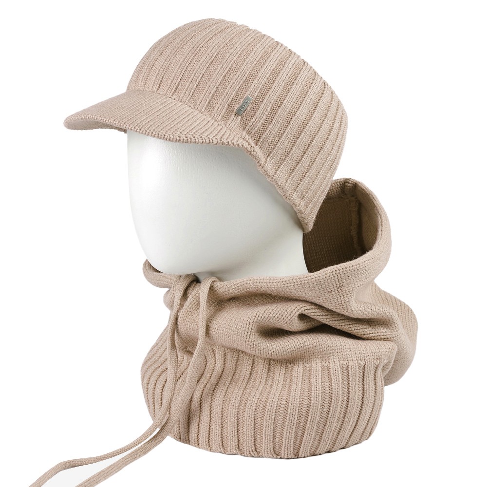 Комплект шапка с козырьком + капора Grandcaps (GC-DK1) кремовый, Кофейный, 56-58, в упаковке 1 шт.