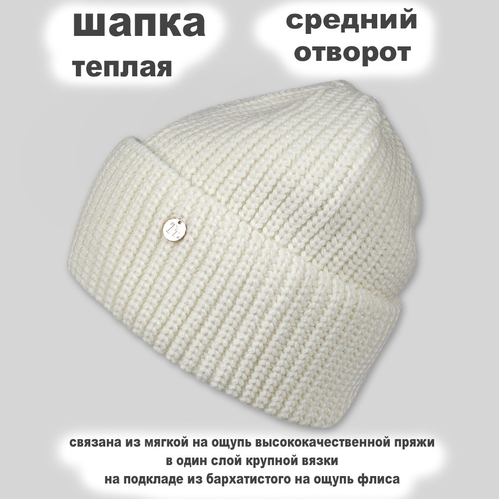Шапка молодежная двухслойная Grandcaps (GC-DZ13FL) тиффани, Молочный, 56-58, в упаковке 1 шт.