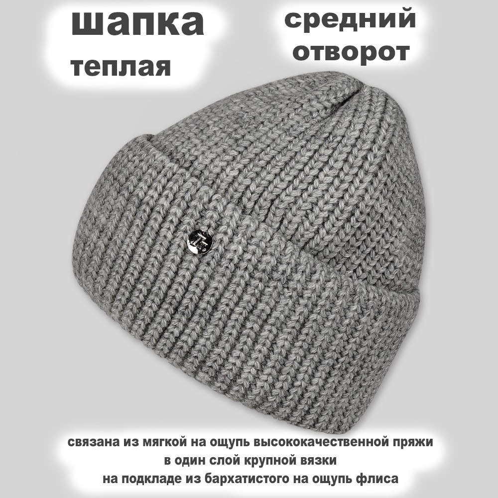 Шапка молодежная двухслойная Grandcaps (GC-DZ13FL) тиффани, Светло-Серый, 56-58, в упаковке 1 шт.