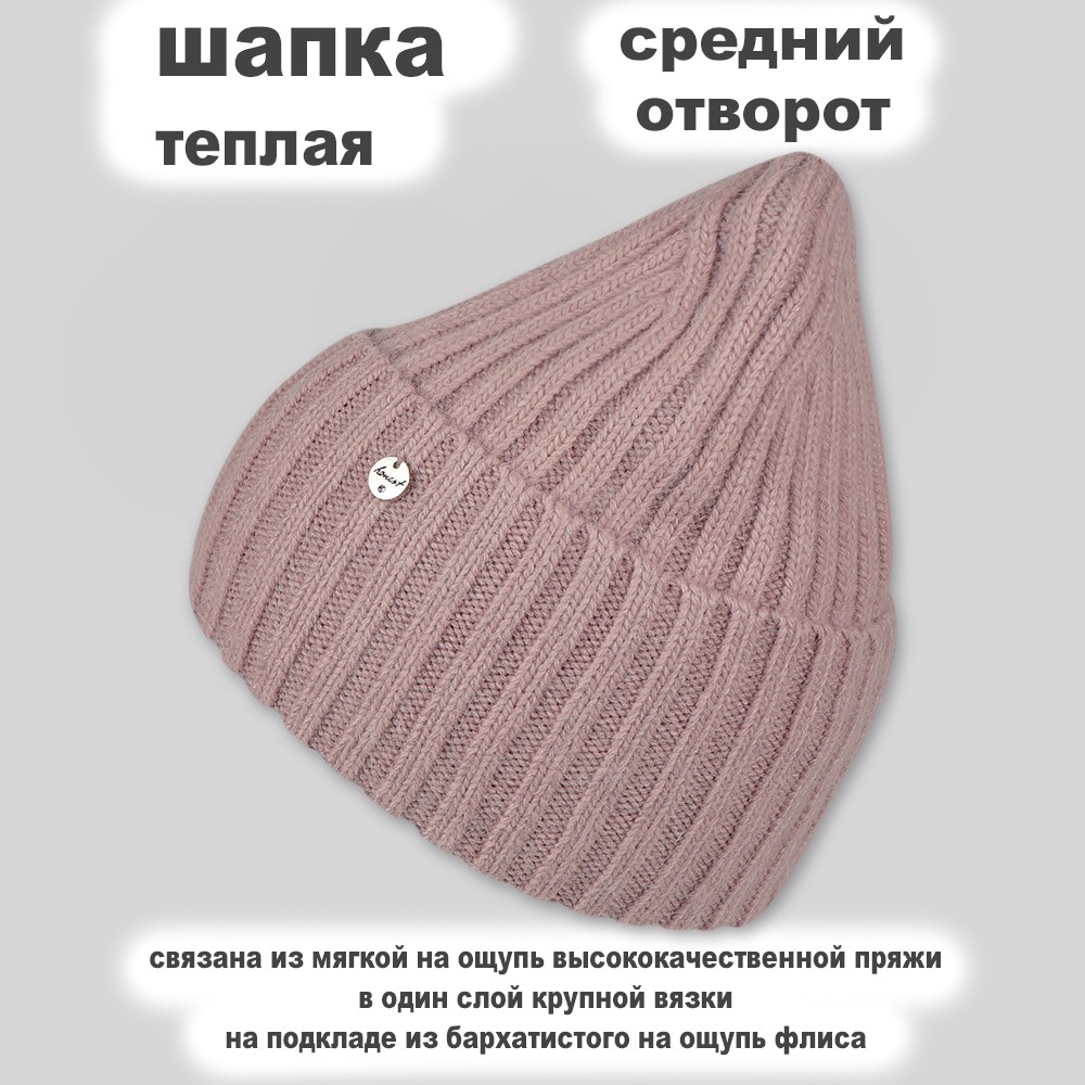 Шапка молодежная двухслойная Grandcaps (GC-DZ23FL) светло-розовый, Пудровый, 56-58, в упаковке 1 шт.