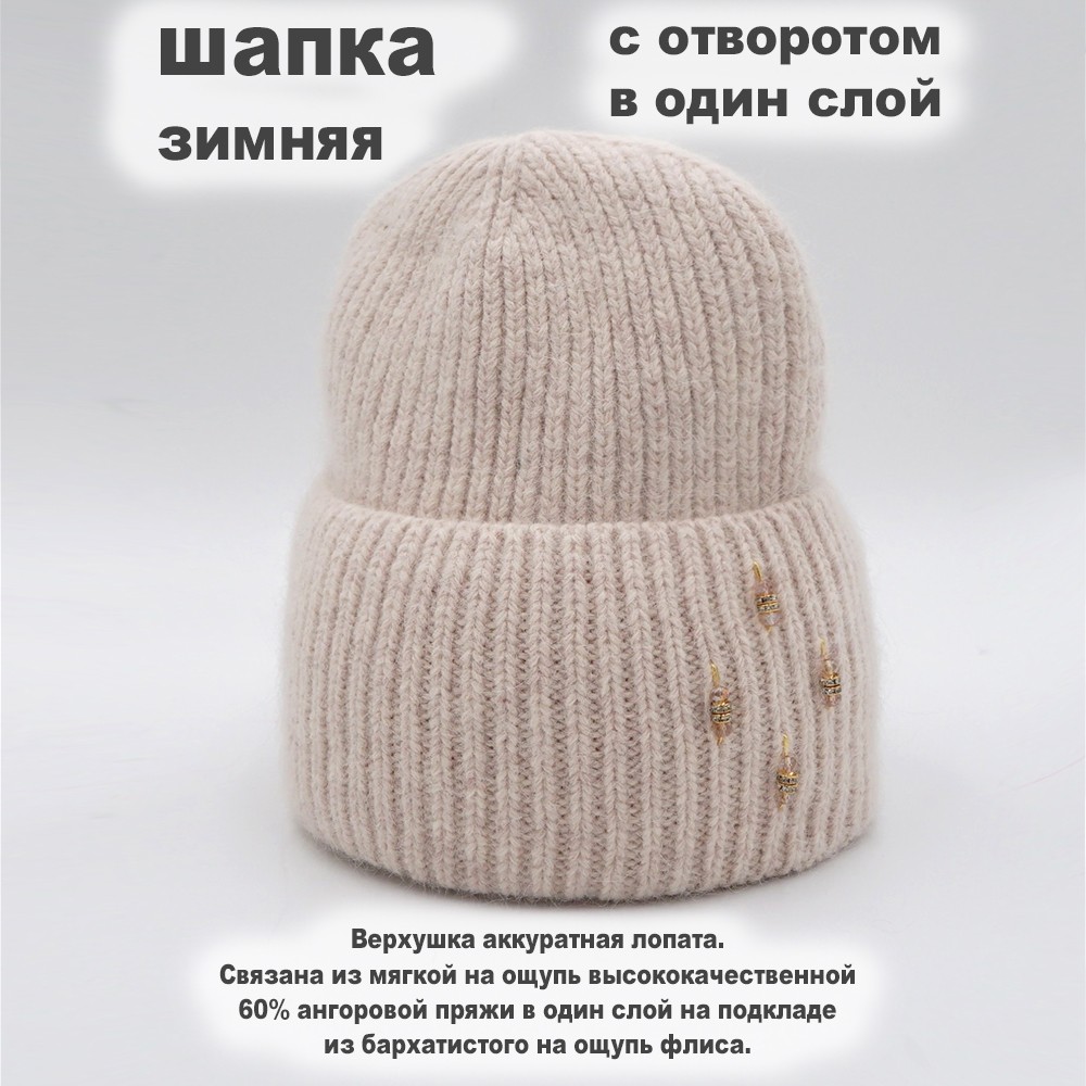 Шапка молодежная двухслойная Grandcaps (GC-DZ24FL) бежевый, Бежевый, 56-58, в упаковке 1 шт. 854 руб/упак.