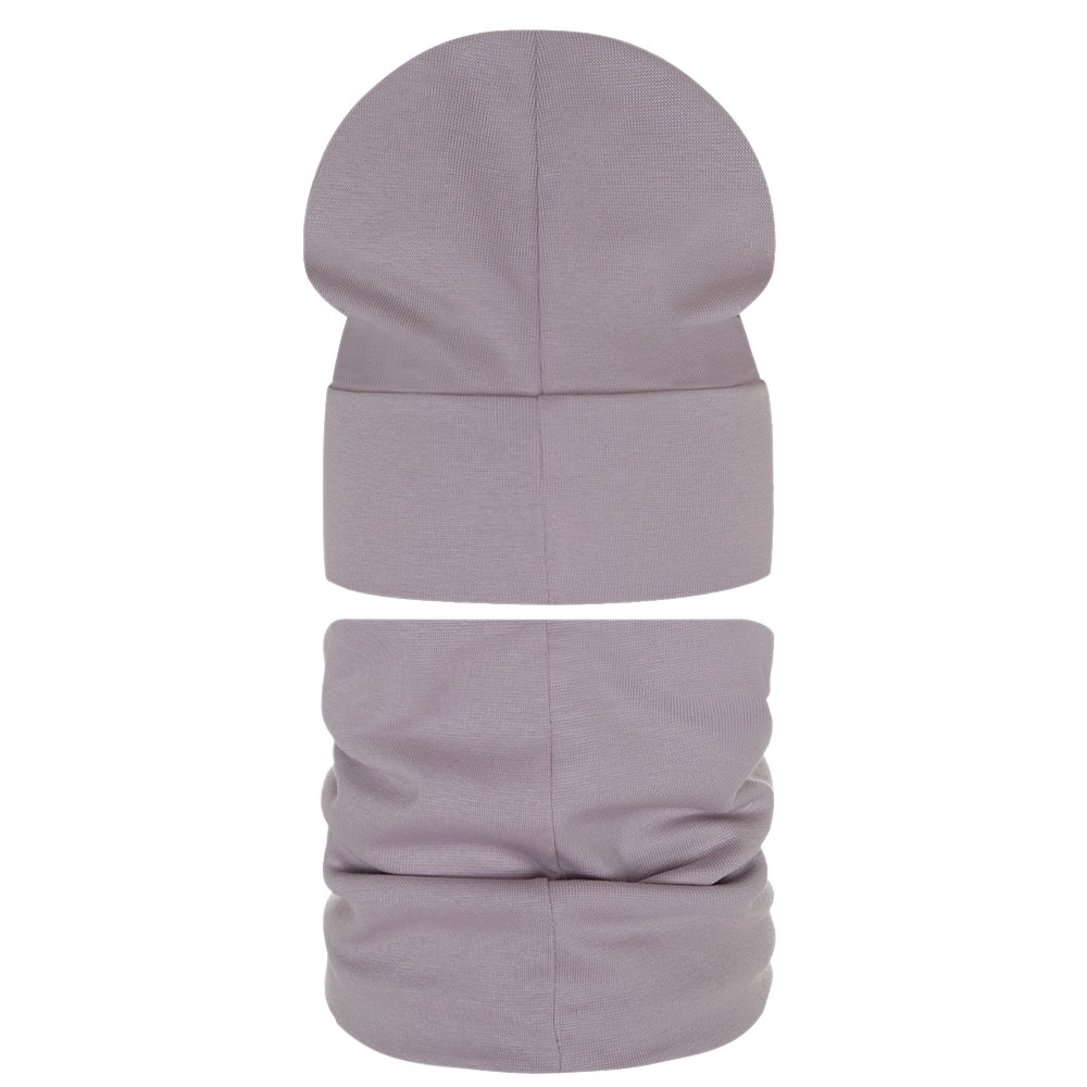 Шапка+снуд детский двухслойный Grandcaps (GC-ITN906-1) бежево-песочный, Светло-Серый Меланж, 50-54, в упаковке 1 шт.