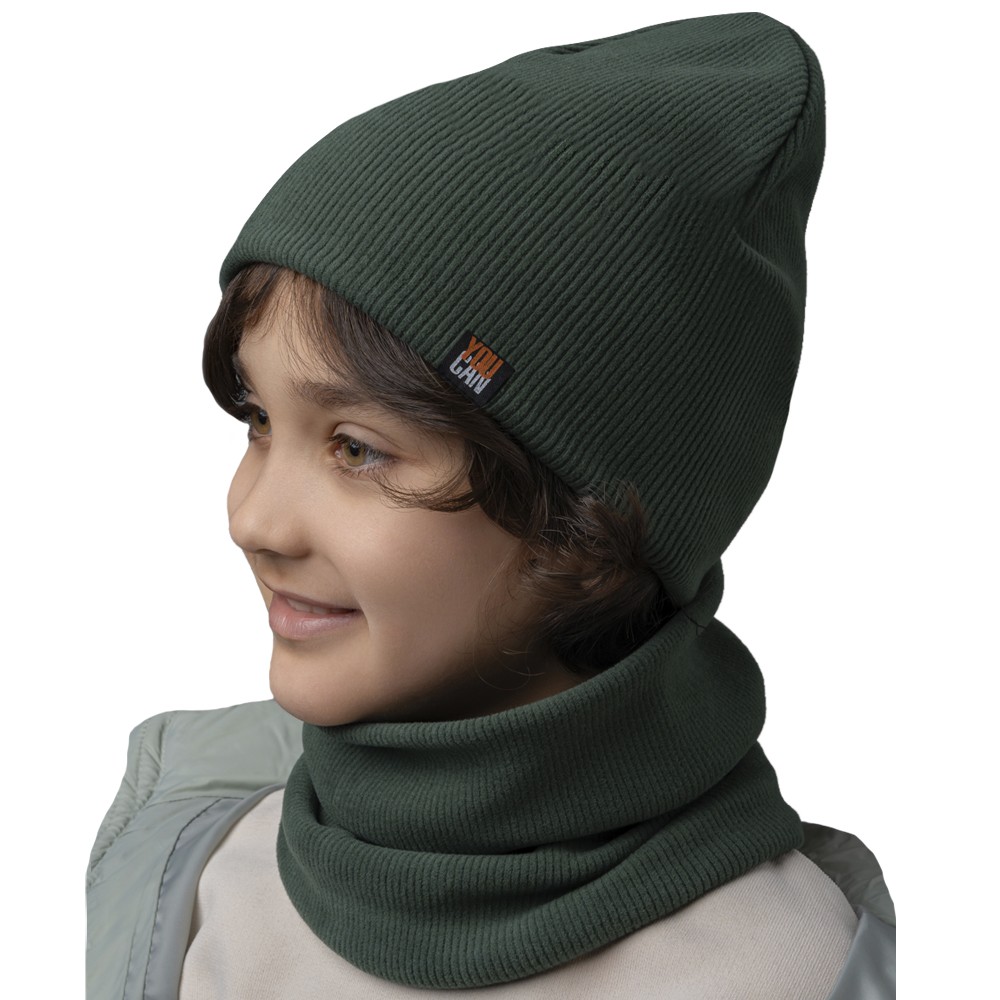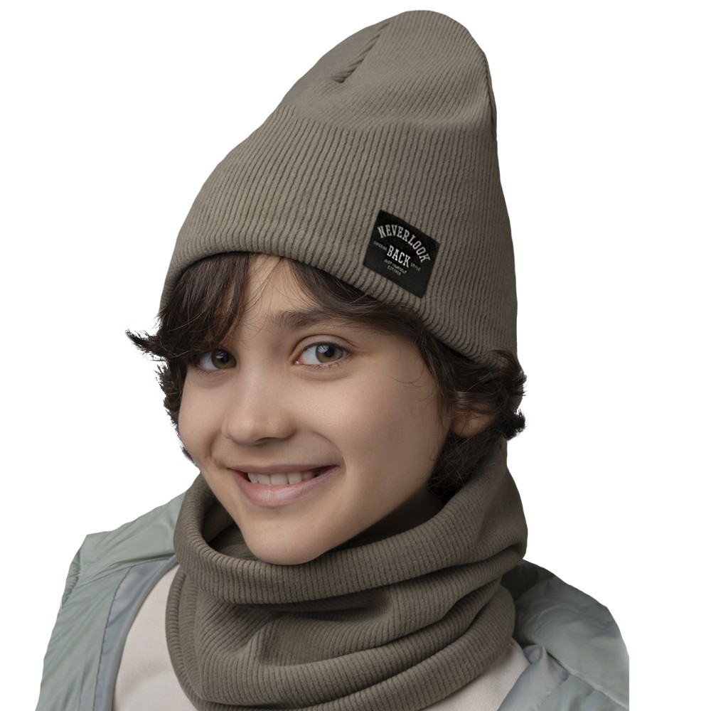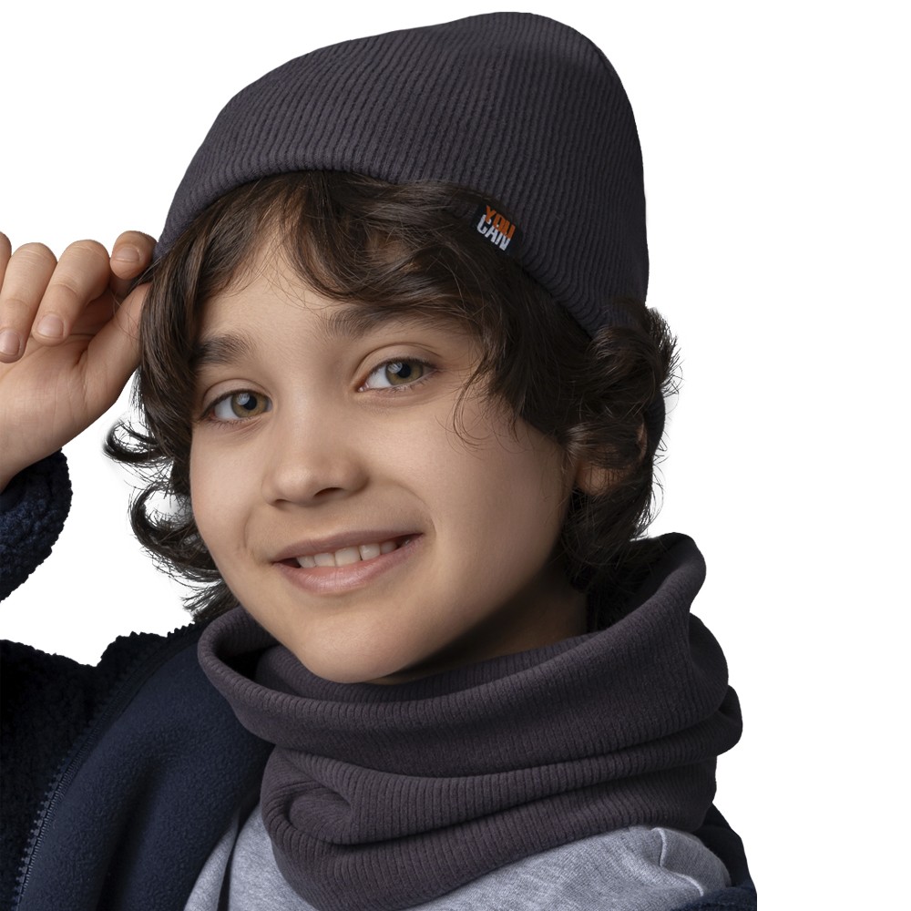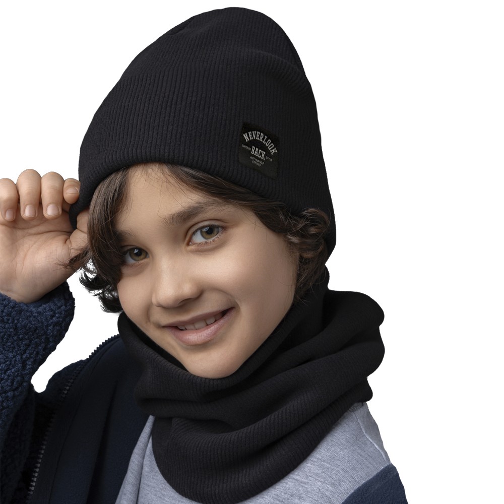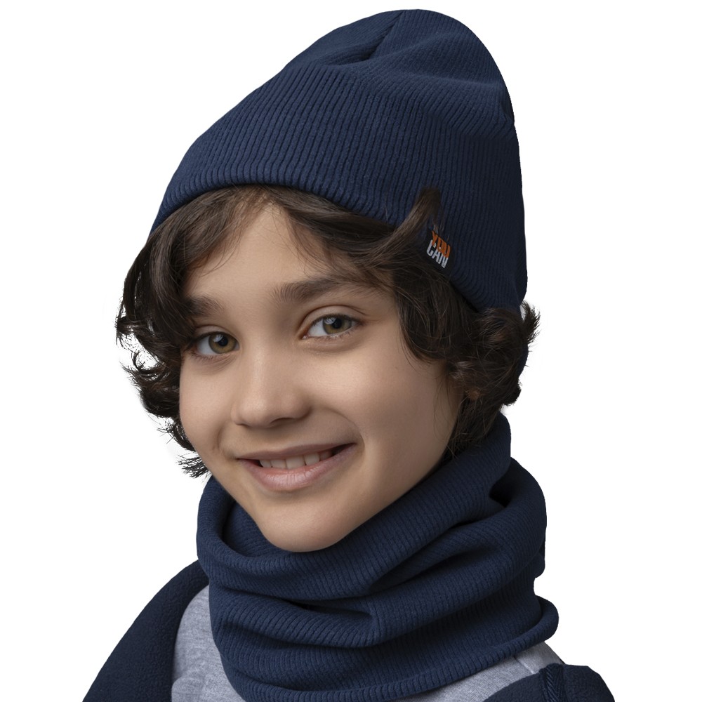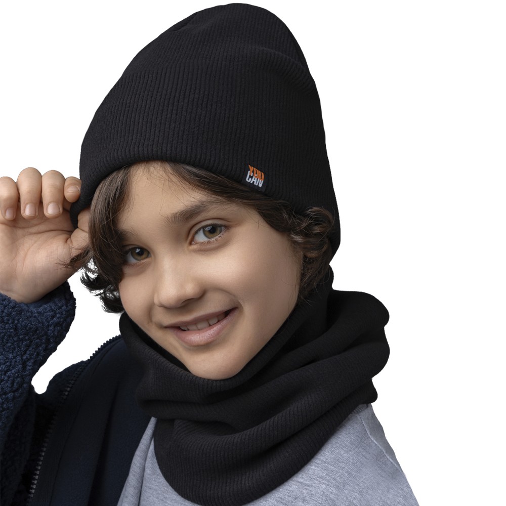 Стильный комплект из двухслойной шапки и снуда для мальчика. Изготовлен из трикотажного хлопкового полотна европейского качества с нашивкой. Мягкий, эластичный и приятный на ощупь - подарит тепло и невероятный комфорт в прохладную погоду.