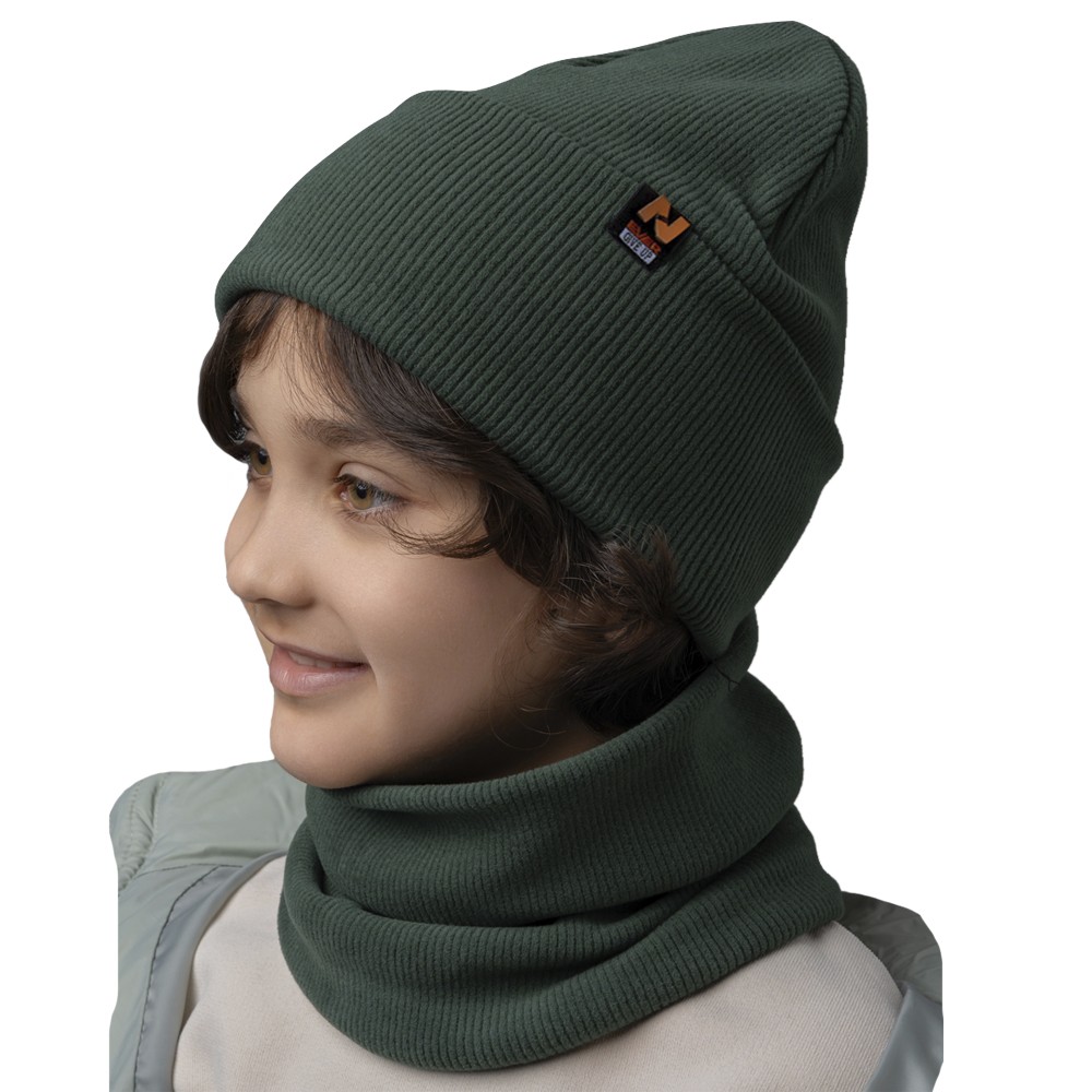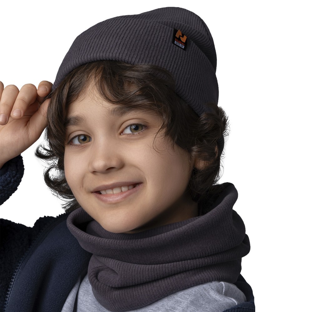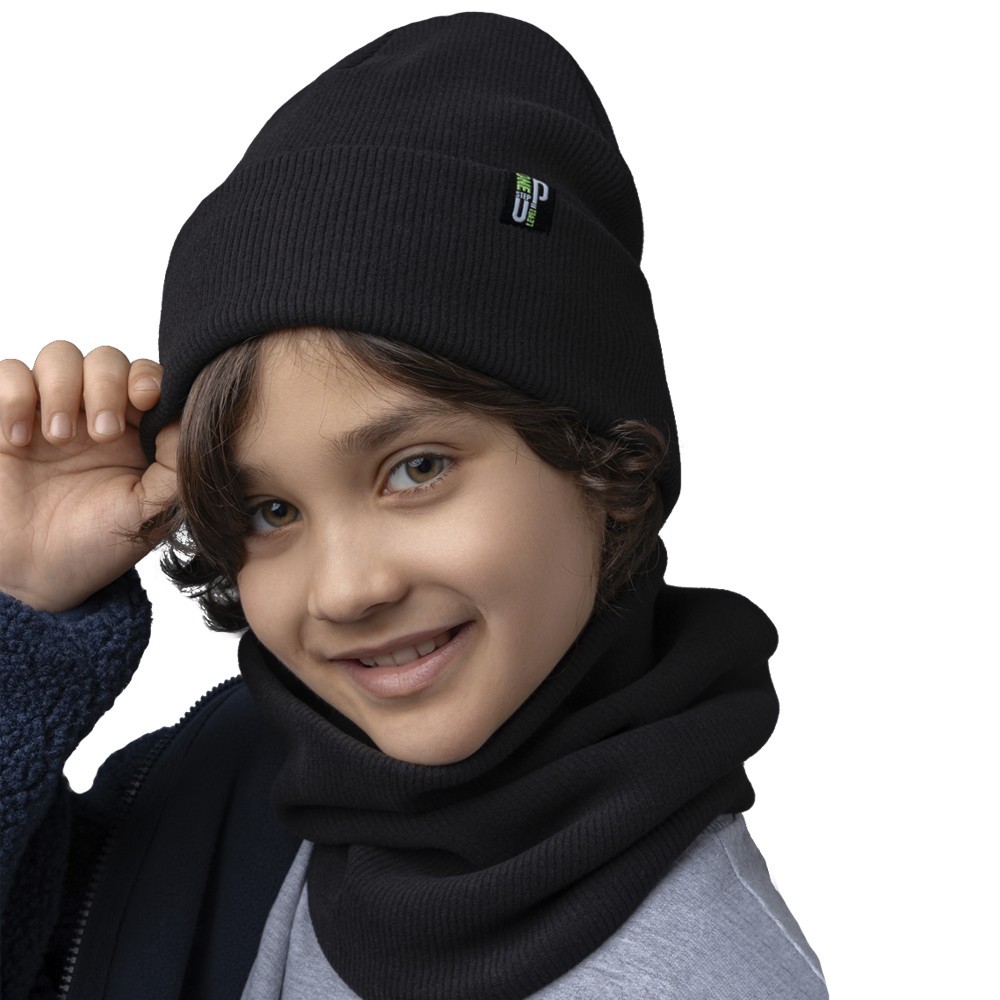Стильный комплект из двухслойной шапки и снуда для мальчика. Изготовлен из трикотажного хлопкового полотна европейского качества с нашивкой. Мягкий, эластичный и приятный на ощупь - подарит тепло и невероятный комфорт в прохладную погоду.