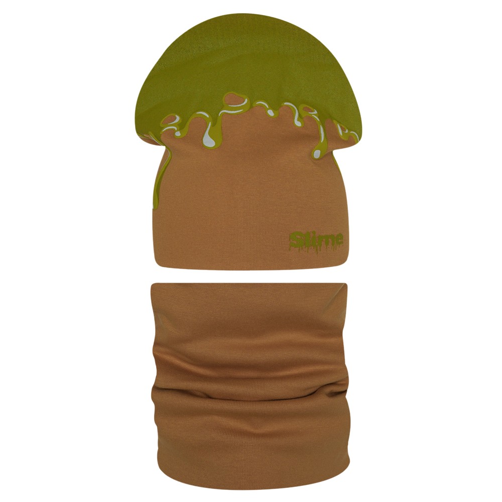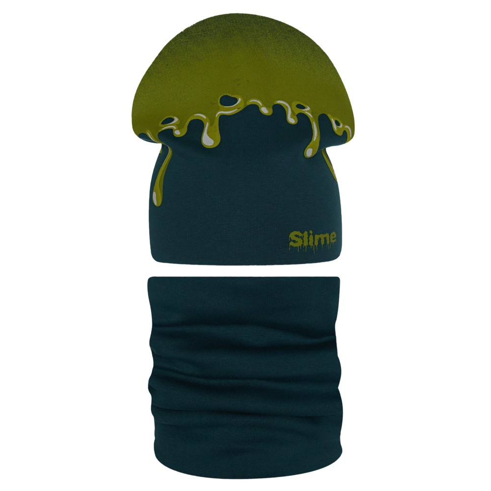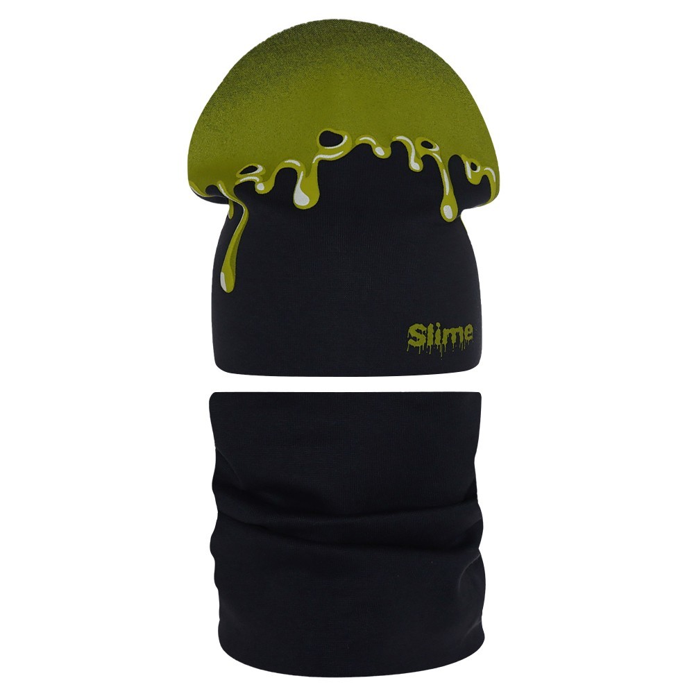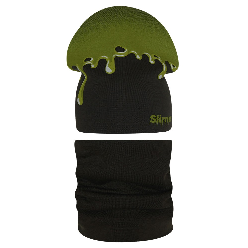 Стильная шапка и снуд для мальчика из мягкого хлопкового трикотажа с принтом, нанесенным краской высокой износостойкости, которая не трескается при длительном растяжении и не портится при стирке. Модель хорошо тянется и предполагает неплотную посадку по форме головы.