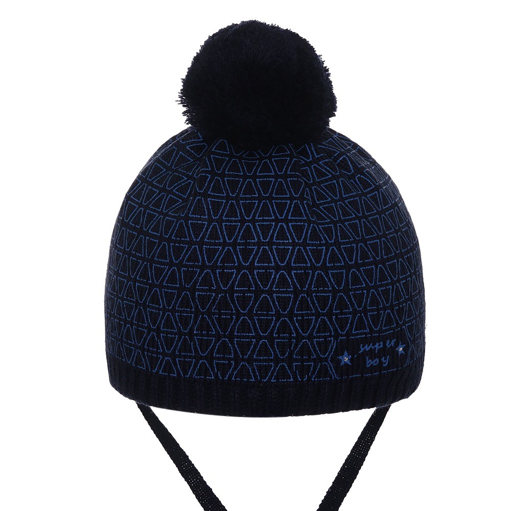 Шапка для мальчика с помпоном на макушке, с пришитыми завязками. Подкладка хлопок, имеет допольнительный утеплитель Softi Term. На шапке печатный принт.