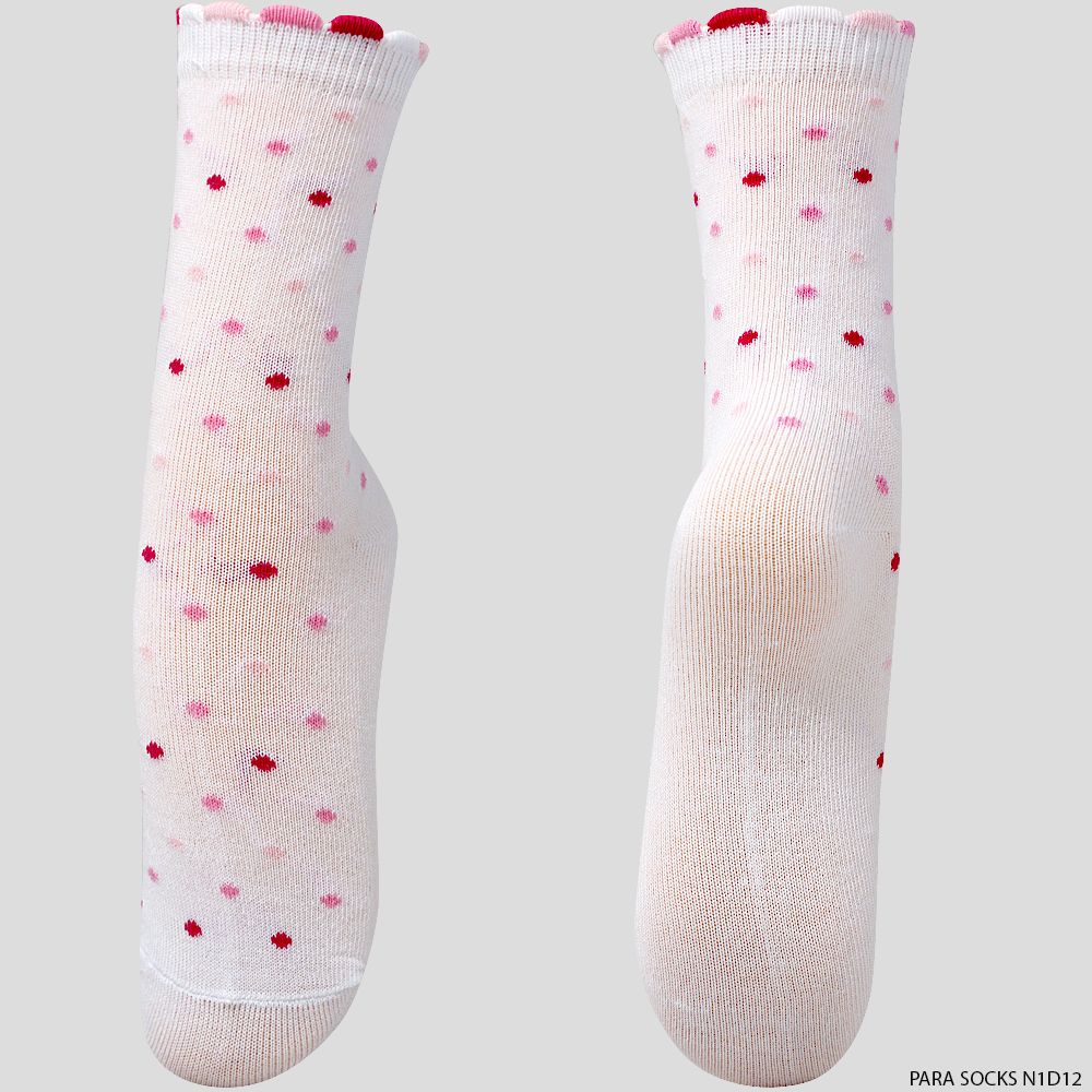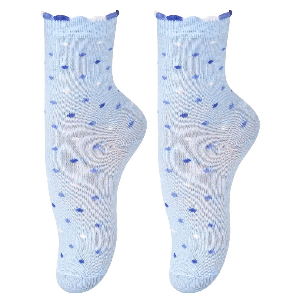Детские носки из смесовой пряжи с добавлением прочной эластановой нити. Отличаются двойным разноцветным бортом с рюшкой "пикот" и кеттельным швом на мыске. Большое содержание хлопка в составе гарантирует комфортный микроклимат, а искусственные волокна - хорошее прилегание и износостойкость. Модель примечательна вывязанным по всему изделию принтом "горошек".